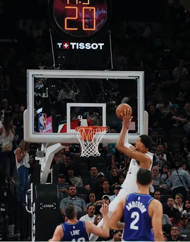 文班亚马还与哈珀配合出了一个势大力沉的空接双手重扣,这一球让马刺主场的球迷们都沸腾了,哈珀这位身高1.96米的高大控卫真的太出彩了。
