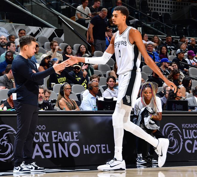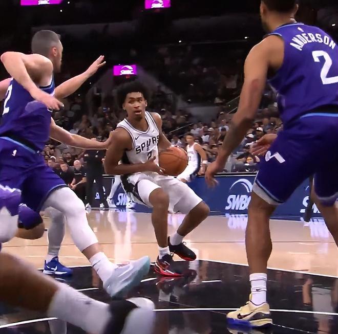 北京时间10月11日,圣安东尼奥马刺队迎来了第三场季前赛,此前两场分别是对阵广州男篮、热火队,此役对阵犹他爵士队,马刺队的新科榜眼迪伦-哈珀复出了,他将直面5号秀艾斯-贝利,这两大超星的对决还是被文班亚马的风采掩盖了,文班16分钟就拿到22+7+3的数据。
