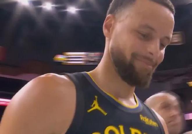 第四节比赛的时候,库里突然被阿门·汤普森撞倒,伤到了自己的右腿,被迫提前退出比赛,直接回到了更衣室。