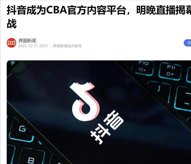 所以从12月12日晚间的CBA揭幕战起,抖音集团相关平台如抖音、今日头条等平台;