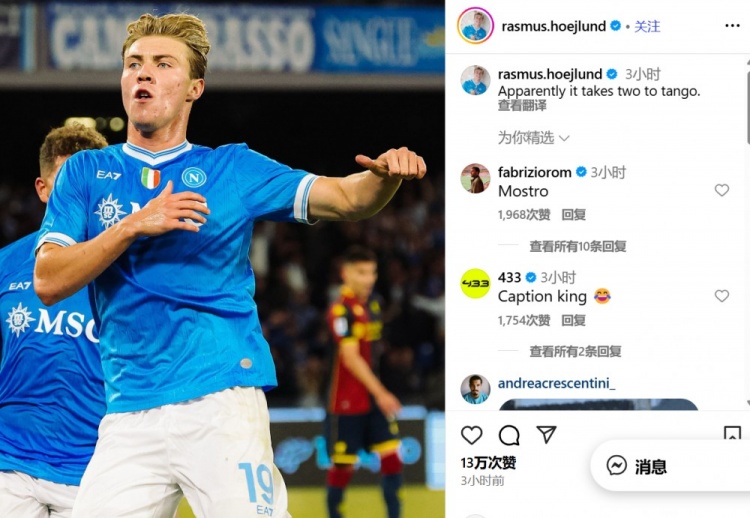 10月6日讯 在那不勒斯2-1逆转热那亚后,进球功臣霍伊伦更新了社交媒体。