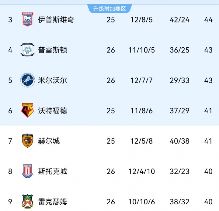 雷克瑟姆近4年中连续实现了英议联——英乙——英甲——英冠的三连跳,目前在英冠也位列第9名,距离升级附加赛区仅有1分之差。